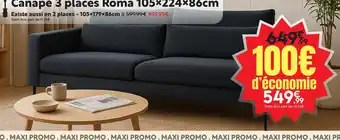 Canapé 3 places roma 105×224×86cm : offres et promos Maxi Bazar à découvrir