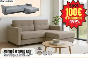 L'offre est disponible dans plusieurs magasins, vérifiez tous les produits pour obtenir le Canapé d'angle kair le moins cher. Si vous souhaitez savoir si l'article est en vente avec une plus grosse remise dans un autre magasin, consultez la catégorie 'Bazar et Déstockage'. Ces offres pourraient aussi vous intéresser : Canapé d'angle roma, Canapé d'angle cobra & Canapé d'angle fixe.