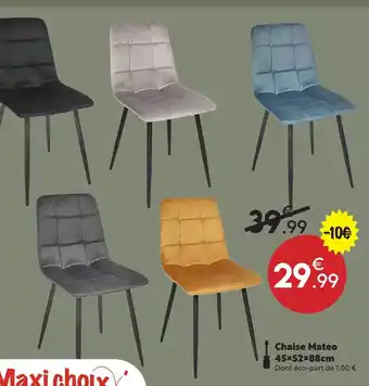 Découvrez les produits les moins chers parmi toutes les offres ! Si vous voulez savoir si Maxi Bazar propose la meilleure remise pour Chaise mateo, comparez-la sur la page thèmes ou avec d'autres magasins.