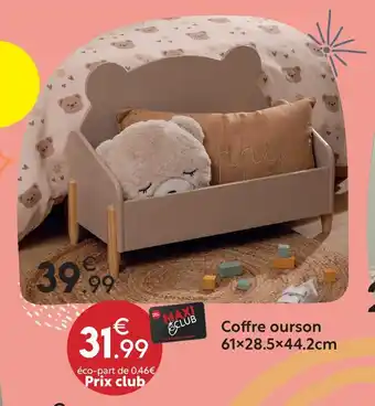 L'offre est disponible dans plusieurs magasins, vérifiez tous les produits pour obtenir le Coffre ourson le moins cher. Si vous souhaitez savoir si l'article est en vente avec une plus grosse remise dans un autre magasin, consultez la catégorie 'Bazar et Déstockage'. Ces offres pourraient aussi vous intéresser : Ourson lumineux, Bibliothèque ourson & Chevet ourson.