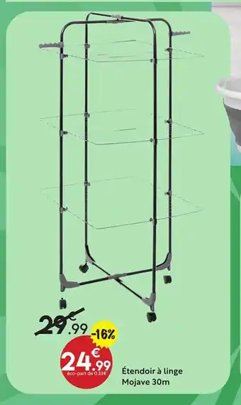 Étendoir à linge Mojave 30m bénéficie actuellement d'une réduction chez Maxi Bazar. Vous trouverez ici toutes les infos utiles sur les prix, la durée de validité et les conditions de l’offre. Pensez à consulter aussi d'autres offres et promotions similaires pour Étendoir à linge Mojave 30m afin d’acheter toujours au bon prix. La promo Étendoir à linge Mojave 30m est valable du 08-04-2026 au 26-04-2026. Offre terminée ? Pas de souci. D'autres offres sur ces produits sont peut-être déjà disponibles. Vous pouvez suivre cette catégorie de produits pour rester informé en cas de nouvelle promotion Étendoir à linge Mojave 30m chez Maxi Bazar. En comparant les offres, vous êtes sûr d’acheter au prix le plus bas possible.Questions fréquemment posées au sujet de Étendoir à linge Mojave 30m