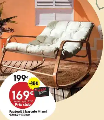 Actuellement en offre chez Maxi Bazar : Fauteuil à bascule miami 92×69×130cm ✅ Valable du 4-03 au 29-03.