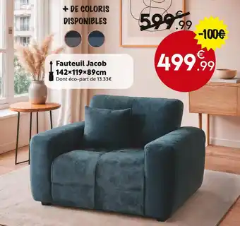 L'offre est disponible dans plusieurs magasins, vérifiez tous les produits pour obtenir le Fauteuil jacob le moins cher. Si vous souhaitez savoir si l'article est en vente avec une plus grosse remise dans un autre magasin, consultez la catégorie 'Bazar et Déstockage'. Ces offres pourraient aussi vous intéresser : Pouf jacob, Canapé d’angle jacob & Canapé 3 places jacob.