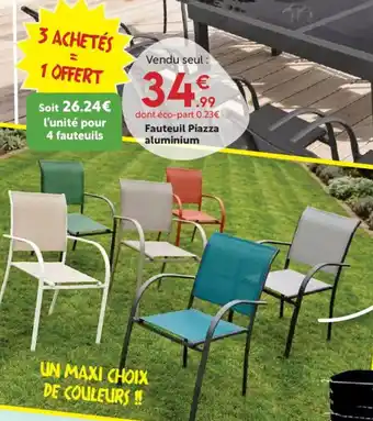 Actuellement en offre chez Maxi Bazar : Fauteuil Piazza aluminium ✅ Valable du 29-04 au 31-05.