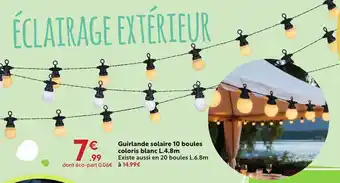 Offre Guirlande solaire 10 boules coloris blanc chez Maxi Bazar