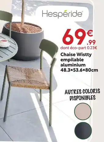 Actuellement en offre chez Maxi Bazar : Hesperide chaise wisty empilable aluminium ✅ Valable du 1-04 au 26-04.