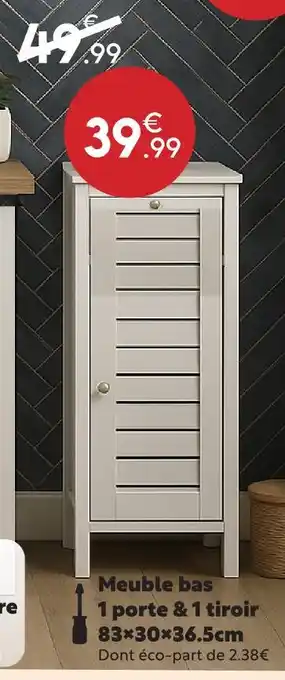 Actuellement en offre chez Maxi Bazar : Meuble bas 1 porte & 1 tiroir ✅ Valable du 27-04 au 31-05.