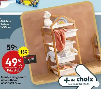 Actuellement en offre chez Maxi Bazar : Meuble rangement 4 bacs bako ✅ Valable du 26-12 au 25-01.