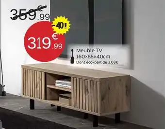 Meuble tv 160×55×40 cm bénéficie actuellement d'une réduction chez Maxi Bazar. Vous trouverez ici toutes les infos utiles sur les prix, la durée de validité et les conditions de l’offre. Pensez à consulter aussi d'autres offres et promotions similaires pour Meuble tv 160×55×40 cm afin d’acheter toujours au bon prix. La promo Meuble tv 160×55×40 cm est valable du 27-04-2026 au 31-05-2026. Offre terminée ? Pas de souci. D'autres offres sur ces produits sont peut-être déjà disponibles. Vous pouvez suivre cette catégorie de produits pour rester informé en cas de nouvelle promotion Meuble tv 160×55×40 cm chez Maxi Bazar. En comparant les offres, vous êtes sûr d’acheter au prix le plus bas possible.Questions fréquemment posées au sujet de Meuble tv 160×55×40 cm