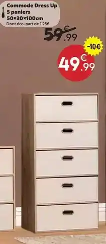 L'offre est disponible dans plusieurs magasins, vérifiez tous les produits pour obtenir le Mode dress up le moins cher. Si vous souhaitez savoir si l'article est en vente avec une plus grosse remise dans un autre magasin, consultez la catégorie 'Bazar et Déstockage'. Ces offres pourraient aussi vous intéresser : Commode dress up, Commode dress up 3 paniers & Commode dress up 2 paniers 50x30x40cm.