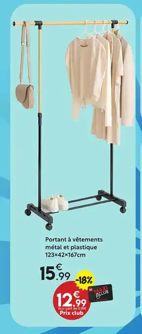 Actuellement en offre chez Maxi Bazar : Portant à vêtements métal et plastique ✅ Valable du 8-04 au 26-04.