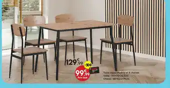 Table repas Madrid et 4 chaises : offres et promos Maxi Bazar à découvrir