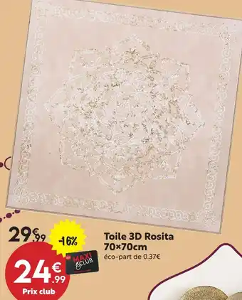 Actuellement en offre chez Maxi Bazar : Toile 3d rosita 70×70cm ✅ Valable du 2-02 au 22-02.