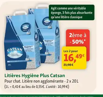 En plus de l'offre CATSAN Litières Hygiène Plus, Maxi Zoo propose une large gamme de produits. Consultez le Catalogue Maxi Zoo hebdomadaire pour découvrir les meilleures offres et promotions. En plus de CATSAN Litières Hygiène Plus, il y a aussi : Catsan litières hygiène plus, Litières catsan hygiène plus & MULTIFIT Litières de chanvre.