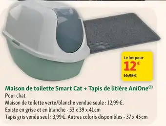 Maison de toilette Smart Cat + Tapis de litière AniOn offres et promotions en ligne chez Maxi Zoo