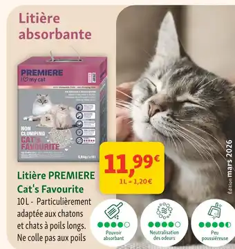 Offre Premiere litière cat's favourite chez Maxi Zoo