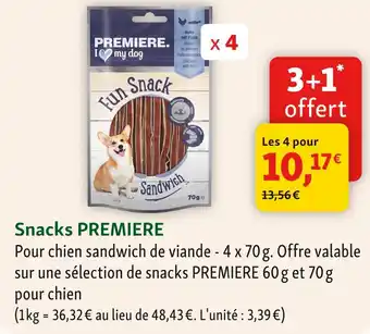 En plus de l'offre Premiere snacks fun snack sandwich, Maxi Zoo propose une large gamme de produits. Consultez le Catalogue Maxi Zoo hebdomadaire pour découvrir les meilleures offres et promotions. En plus de Premiere snacks fun snack sandwich, il y a aussi : Premiere. - snacks, Premiere snacks soft bites & Snack day snack mix.