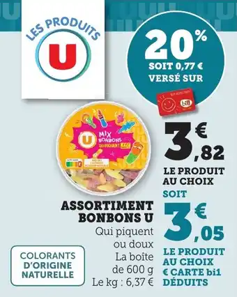 En plus de l'offre Assortiment bonbons u, Maximarché propose une large gamme de produits. Consultez le Catalogue Maximarché hebdomadaire pour découvrir les meilleures offres et promotions. En plus de Assortiment bonbons u, il y a aussi : Assortiment bonbons u, Assortiment bonbons u & U assortiment bonbons.