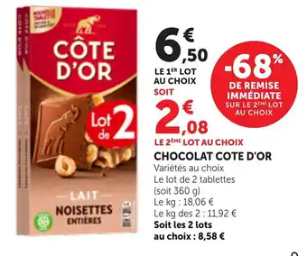 L'offre est disponible dans plusieurs magasins, vérifiez tous les produits pour obtenir le Cote D'Or Chocolat le moins cher. Si vous souhaitez savoir si l'article est en vente avec une plus grosse remise dans un autre magasin, consultez la catégorie 'Supermarché'. Ces offres pourraient aussi vous intéresser : Cote d'or chocolat, Côte d'or chocolat & CHOCOLAT CÔTE D'OR.