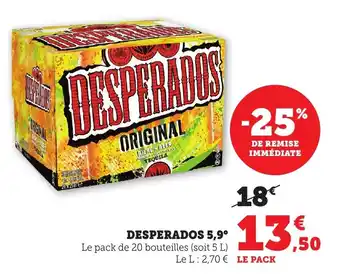 L'offre est disponible dans plusieurs magasins, vérifiez tous les produits pour obtenir le Desperados 5,9° le moins cher. Si vous souhaitez savoir si l'article est en vente avec une plus grosse remise dans un autre magasin, consultez la catégorie 'Supermarché'. Ces offres pourraient aussi vous intéresser : DESPERADOS 5,9°, Desperados 5,9° & Desperados 5,9°.