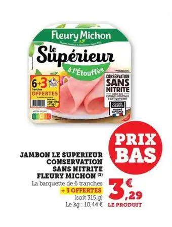 Découvrez les produits les moins chers parmi toutes les offres ! Si vous voulez savoir si Maximarché propose la meilleure remise pour FLEURY MICHON Jambon le superieur conservation sans nitrite, comparez-la sur la page thèmes ou avec d'autres magasins.