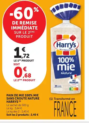 HARRYS Pain de mie 100% mie sans croute nature offres et promotions en ligne chez Maximarché