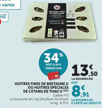 L'offre est disponible dans plusieurs magasins, vérifiez tous les produits pour obtenir le Huitres fines de bretagne u ou huitres speciales de l'etang de thau u le moins cher. Si vous souhaitez savoir si l'article est en vente avec une plus grosse remise dans un autre magasin, consultez la catégorie 'Supermarché'. Ces offres pourraient aussi vous intéresser : Huitres fines de bretagne u ou huitres speciales de l'etang de thau u, Huitres fines de bretagne u ou huitres speciales de l'etang de thau u & U Huitres fines de bretagne u soit ou huitres speciales de l'etang de thau.