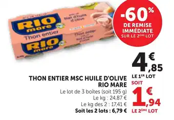 En plus de l'offre RIO MARE Thon entier msc huile d'olive, Maximarché propose une large gamme de produits. Consultez le Catalogue Maximarché hebdomadaire pour découvrir les meilleures offres et promotions. En plus de RIO MARE Thon entier msc huile d'olive, il y a aussi : RIO MARE Thon entier msc huile d'olive, Rio mare thon entier msc huile d'olive & Rio mare - thon entier msc huile d'olive.