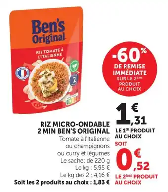 Offre Riz micro-ondable 2 min ben's original chez Maximarché