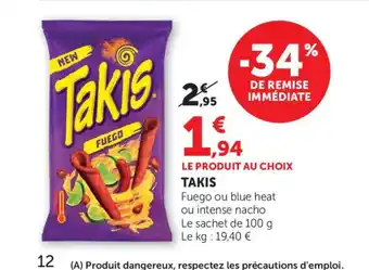 L'offre est disponible dans plusieurs magasins, vérifiez tous les produits pour obtenir le TAKIS le moins cher. Si vous souhaitez savoir si l'article est en vente avec une plus grosse remise dans un autre magasin, consultez la catégorie 'Supermarché'. Ces offres pourraient aussi vous intéresser : TAKIS, Takis & Takis.