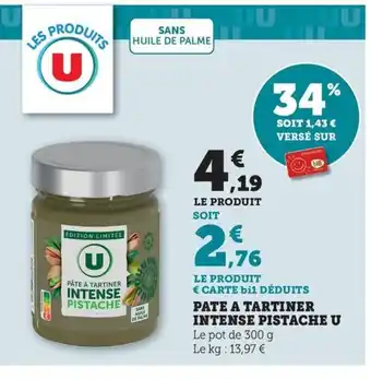 U Pate a tartiner intense pistache : offres et promos Maximarché à découvrir