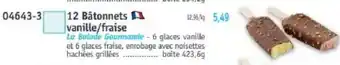 L'offre est disponible dans plusieurs magasins, vérifiez tous les produits pour obtenir le 12 Bâtonnets vanille/fraise le moins cher. Si vous souhaitez savoir si l'article est en vente avec une plus grosse remise dans un autre magasin, consultez la catégorie 'Supermarché'. Ces offres pourraient aussi vous intéresser : 6 Cônes vanille/fraise, 4 bâtonnets vanille cookie & 16 Bâtonnets saveur vanille.