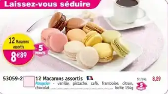 L'offre est disponible dans plusieurs magasins, vérifiez tous les produits pour obtenir le 12 macarons assortis le moins cher. Si vous souhaitez savoir si l'article est en vente avec une plus grosse remise dans un autre magasin, consultez la catégorie 'Supermarché'. Ces offres pourraient aussi vous intéresser : Macarons, 12 macarons simpl & Macarons classique.