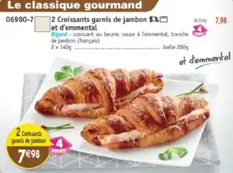 2 croissants garnis de jambon et d'emmental 280 g
