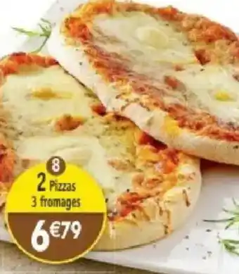 L'offre est disponible dans plusieurs magasins, vérifiez tous les produits pour obtenir le 2 pizzas 3 fromages le moins cher. Si vous souhaitez savoir si l'article est en vente avec une plus grosse remise dans un autre magasin, consultez la catégorie 'Supermarché'. Ces offres pourraient aussi vous intéresser : 2 Pizzas 3 fromages, MAMA MANCINI 2 pizzas 4 fromages & Petites pizzas jambon/fromages.