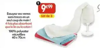 L'offre est disponible dans plusieurs magasins, vérifiez tous les produits pour obtenir le 3 torchons microfibre spécial verre le moins cher. Si vous souhaitez savoir si l'article est en vente avec une plus grosse remise dans un autre magasin, consultez la catégorie 'Supermarché'. Ces offres pourraient aussi vous intéresser : Torchons, Lot de 5 torchons & Lot de 5 torchons 50x70cm.