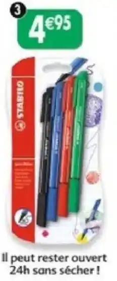 L'offre est disponible dans plusieurs magasins, vérifiez tous les produits pour obtenir le 4 feutres d'écriture le moins cher. Si vous souhaitez savoir si l'article est en vente avec une plus grosse remise dans un autre magasin, consultez la catégorie 'Supermarché'. Ces offres pourraient aussi vous intéresser : CRELANDO Feutres aquarelle, Seau de 100 feutres & Ulmann seau de 100 feutres.