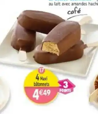 L'offre est disponible dans plusieurs magasins, vérifiez tous les produits pour obtenir le 4 Maxi-bâtonnets café le moins cher. Si vous souhaitez savoir si l'article est en vente avec une plus grosse remise dans un autre magasin, consultez la catégorie 'Supermarché'. Ces offres pourraient aussi vous intéresser : 4 Maxi-bâtonnets café, 4 maxi-bâtonnets menthe & 4 Maxi-bâtonnets menthe.