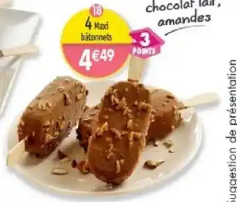 Actuellement en offre chez Maximo : 4 Maxi-bâtonnets vanille enrobage chocolat lait, amandes ✅ Valable du 24-12 au 22-01.