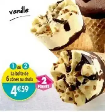 L'offre est disponible dans plusieurs magasins, vérifiez tous les produits pour obtenir le 6 Cônes vanille le moins cher. Si vous souhaitez savoir si l'article est en vente avec une plus grosse remise dans un autre magasin, consultez la catégorie 'Supermarché'. Ces offres pourraient aussi vous intéresser : 6 Cônes vanille/fraise, 6 cônes vanille fraise & 6 cônes glacées.