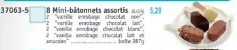 L'offre est disponible dans plusieurs magasins, vérifiez tous les produits pour obtenir le 8 Mini-bâtonnets assortis le moins cher. Si vous souhaitez savoir si l'article est en vente avec une plus grosse remise dans un autre magasin, consultez la catégorie 'Supermarché'. Ces offres pourraient aussi vous intéresser : 8 mini bâtonnets pétillants vanille, Mini-bâtonnets - de poisson panés & Bâtonnets à glace mini.