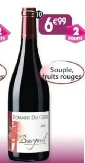 L'offre est disponible dans plusieurs magasins, vérifiez tous les produits pour obtenir le Bourgueil 2024 domaine du cèdre le moins cher. Si vous souhaitez savoir si l'article est en vente avec une plus grosse remise dans un autre magasin, consultez la catégorie 'Supermarché'. Ces offres pourraient aussi vous intéresser : Domaine Montbenoit, 2020 - Coteaux du Giennois AOP - Rouge - 75 cl, Cabernet d'anjou domaine d'avrillé & Costières de nîmes 2024 domaine du prince.