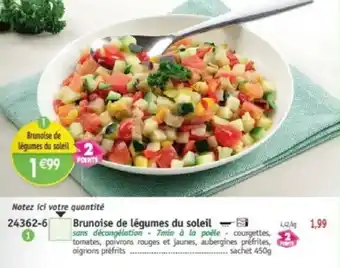 L'offre est disponible dans plusieurs magasins, vérifiez tous les produits pour obtenir le Brunoise de légumes du soleil le moins cher. Si vous souhaitez savoir si l'article est en vente avec une plus grosse remise dans un autre magasin, consultez la catégorie 'Supermarché'. Ces offres pourraient aussi vous intéresser : Brunoise de légumes du soleil, Brunoise de légumes & Brunoise de légumes méditerranéens.