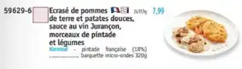 Ecrasé de pommes de terre et patates douces, sauce au vin jurançon, morceaux de pintade et légumes 320 g