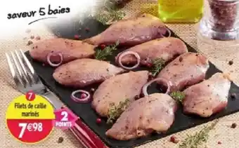 L'offre est disponible dans plusieurs magasins, vérifiez tous les produits pour obtenir le Filets de caille marinés saveur 5 baies le moins cher. Si vous souhaitez savoir si l'article est en vente avec une plus grosse remise dans un autre magasin, consultez la catégorie 'Supermarché'. Ces offres pourraient aussi vous intéresser : 3 filets de canard marinés aux 3 poivres, Sans marque 3 filets de canard marinés aux 3 poivres votre volailler & 4 FAUX-FILETS SAVEUR MAÎTRE D'HÔTEL MAXI FORMAT 'SOCOPA'.
