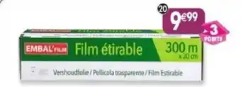 L'offre est disponible dans plusieurs magasins, vérifiez tous les produits pour obtenir le Film étirable le moins cher. Si vous souhaitez savoir si l'article est en vente avec une plus grosse remise dans un autre magasin, consultez la catégorie 'Supermarché'. Ces offres pourraient aussi vous intéresser : FILM ÉTIRABLE 300 M, FILM ÉTIRABLE ECO+ & Film étirable alimentaire.