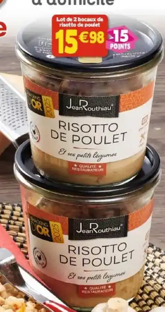 En plus de l'offre Lot de 2 bocaux de risotto de poulet et ses petits légumes, Maximo propose une large gamme de produits. Consultez le Catalogue Maximo hebdomadaire pour découvrir les meilleures offres et promotions. En plus de Lot de 2 bocaux de risotto de poulet et ses petits légumes, il y a aussi : Lot de 2 bocaux de cassoulet, Lot de 2 bocaux de saucisses aux lentilles cuisinées aux petits oignons & carottes & Lot de 2 bocaux de choucroute garnie.