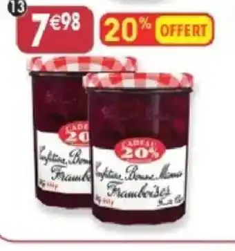 L'offre est disponible dans plusieurs magasins, vérifiez tous les produits pour obtenir le Lot de 2 pots de confiture de framboises 50% de fruits le moins cher. Si vous souhaitez savoir si l'article est en vente avec une plus grosse remise dans un autre magasin, consultez la catégorie 'Supermarché'. Ces offres pourraient aussi vous intéresser : Lot de 2 pots de confiture. de myrtilles 50% de fruits, Lot de 2 pots de confiture de pêches 50% de fruits & Lot de 2 pots de confiture.