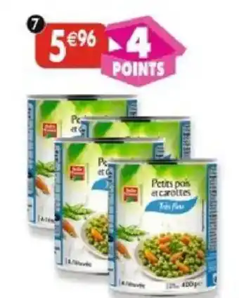 L'offre est disponible dans plusieurs magasins, vérifiez tous les produits pour obtenir le Lot de 4 boîtes 1/2 de petits pois très fins et jeunes carottes le moins cher. Si vous souhaitez savoir si l'article est en vente avec une plus grosse remise dans un autre magasin, consultez la catégorie 'Supermarché'. Ces offres pourraient aussi vous intéresser : Lot de 4 boîtes 4/4.de petits pois carottes, Petits pois extra-fins et jeunes carottes à l'étuvée & Lot de 4 boîtes 1/2 de petits pois étuvés extra-fins.