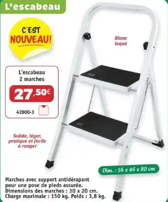 L'offre est disponible dans plusieurs magasins, vérifiez tous les produits pour obtenir le Marches avec support antidérapant pour une pose de pieds assurée. le moins cher. Si vous souhaitez savoir si l'article est en vente avec une plus grosse remise dans un autre magasin, consultez la catégorie 'Supermarché'. Ces offres pourraient aussi vous intéresser : Domedia séchoir sur pieds 27 m, CENTAURE Escabeau MB 5 marches & Escalux marchepieds 2 marches.